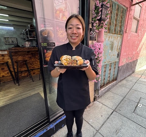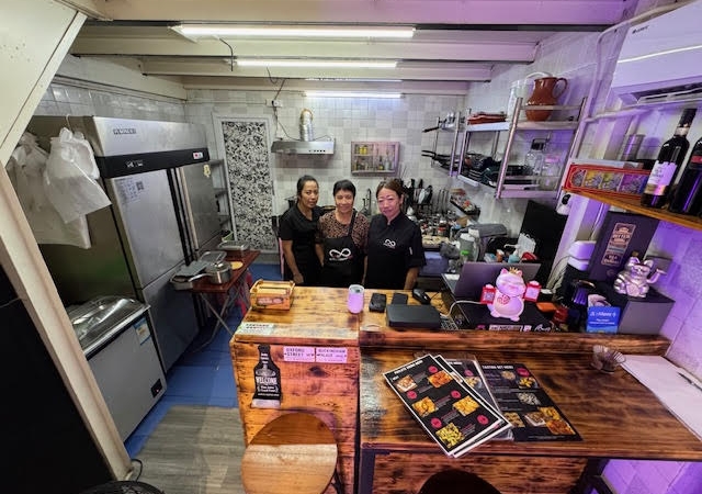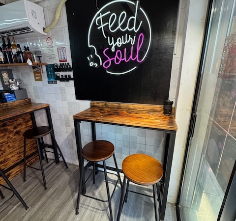 地面層設有開放式廚房、吧檯以及五張吧枱櫈。背景中,巴薩諾瓦旋律與爵士歌手Karen Souza的歌聲輕柔流淌,更添悠閒隨性的氛圍。Vivian與兩位夥伴Ching Tse 和Dewi 一面備餐,一面與顧客閒談,這種互動是她的一大樂趣。