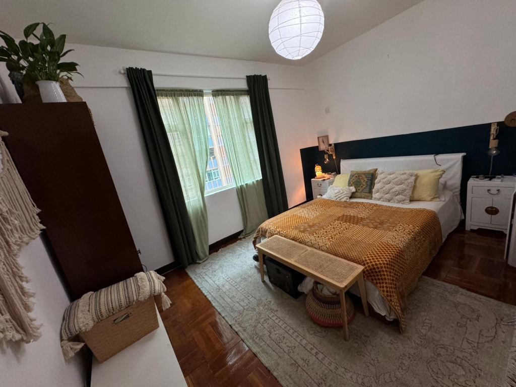 這對夫婦談妥了一份為期五年的租約,租金合理,因此有預算自己動手改造。深青黑色的油漆很好地遮住了睡房走廊盡頭的管道,洗手盆則簡單地用一個更高、更美觀的檯面和盆水覆蓋。所有的窗飾都是自己設計的,客廳是柔和飄逸的白色,書房選用淡橙色,主睡房則是綠色。
