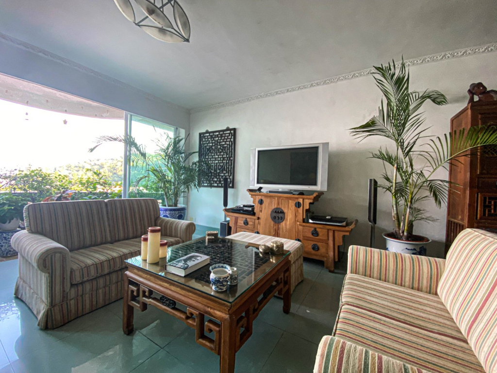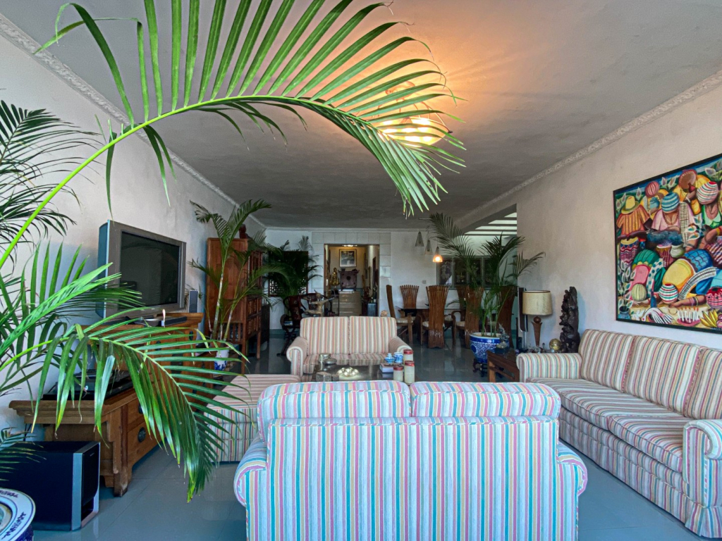 當被邀請到Manuela的家時,腦海中浮現的肯定是寧靜這個詞,這是一個位於海邊的三房復式單位,可以俯瞰黑沙海灘。客廳、飯廳是一個涼爽和放鬆的空間,淡綠色的瓷磚地板,乾淨得發白的牆壁,木架上的中國陶瓷盆中的巨大蕨類植物幾乎與天花板齊平。「在我年輕的時候,我非常活躍,晚上很少會待在家裡。但現在,我很少外出,我更喜歡家裡舒適的環境。」